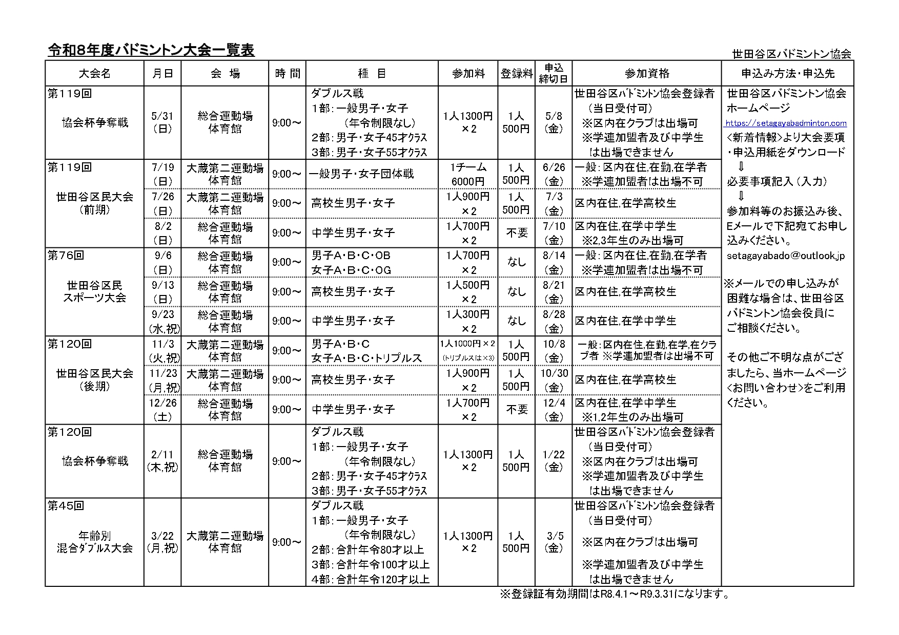 世田谷区バドミントン協会